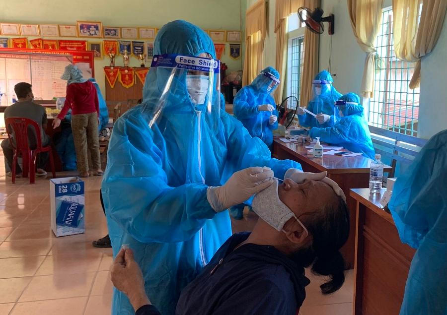 Lực lượng y tế Quảng Bình tiến hành lấy mẫu xét nghiệm các trường hợp F1 trong ngày 25/8. |