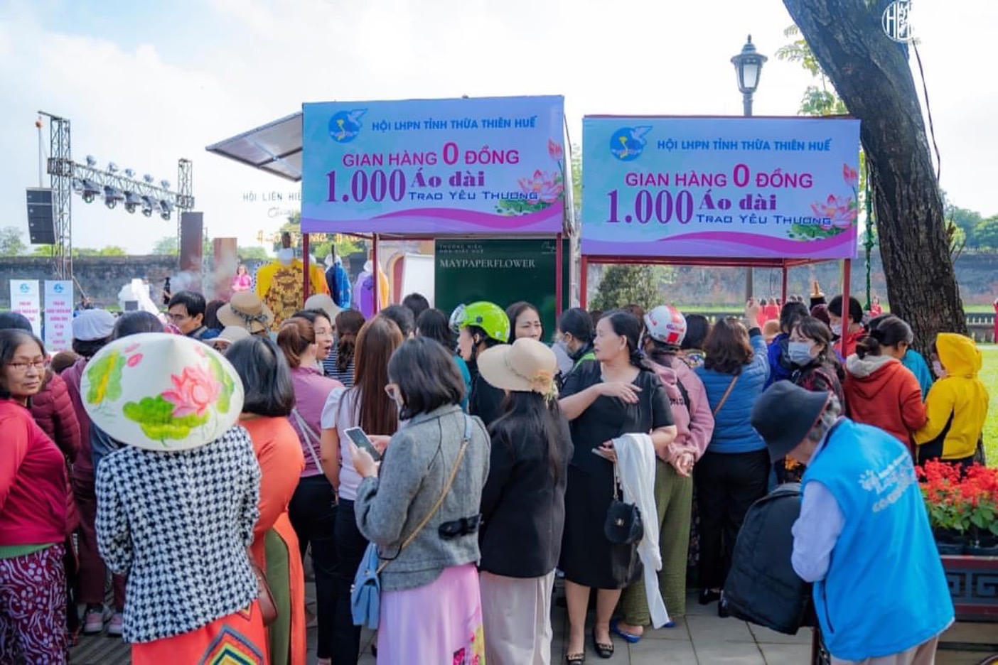 Đặc biệt, dịp này Hội LHPN tỉnh Thừa Thiên Huế đã phát động, kêu gọi xây dựng thành công gian hàng 0 đồng "1.000 áo dài - Trao tặng yêu thương". Qua đó, trao tặng hơn 1.000 bộ áo dài đến các chị em phụ nữ có hoàn cảnh khó khăn hoặc có nhu cầu mặc áo dài, như một món quà nhân Ngày Quốc tế Phụ nữ 8/3.