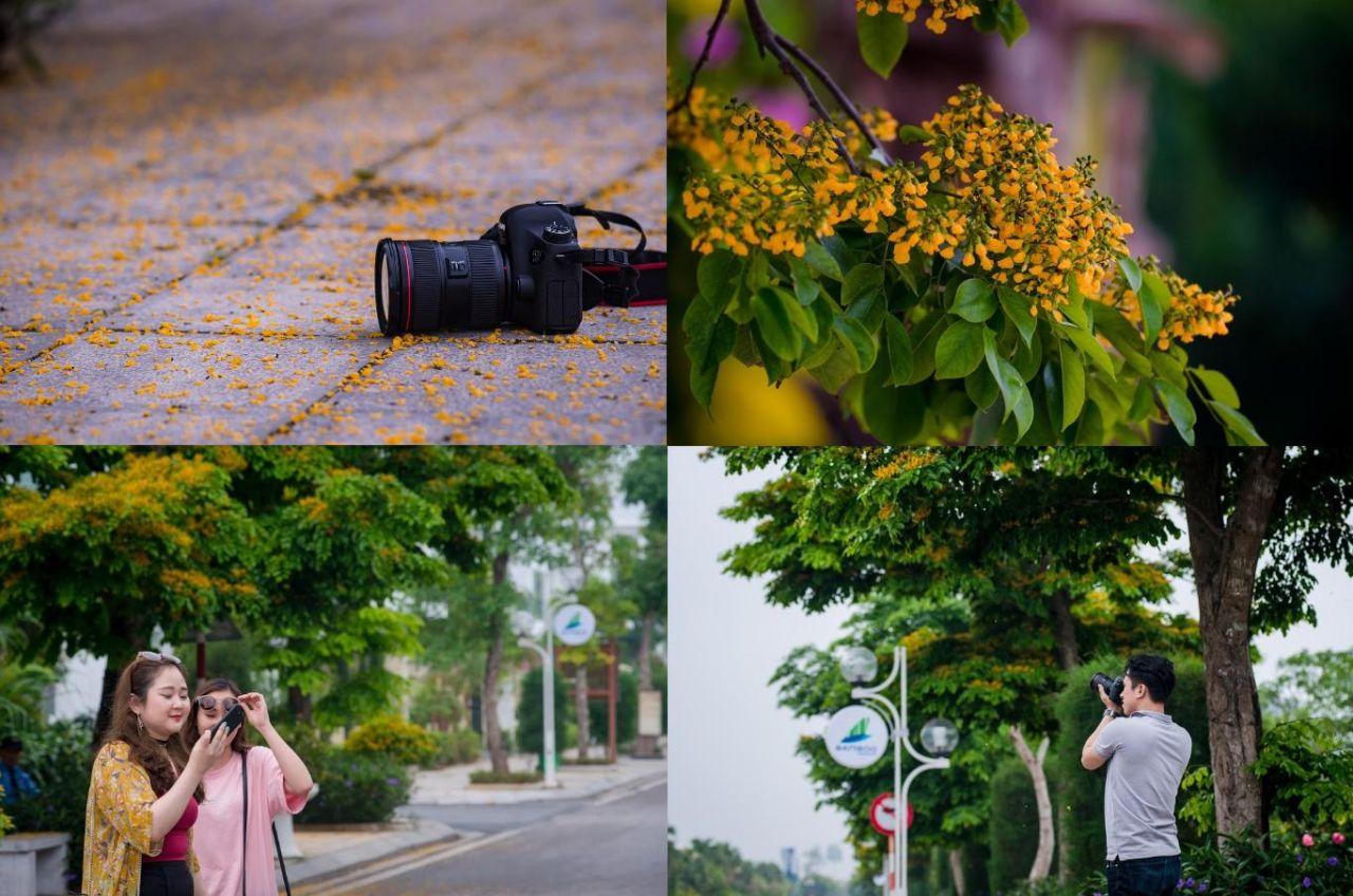 Mỗi độ tháng 4 về là lúc giáng hương bung nở sắc vàng, nồng nàn gọi hè sang tại phố biển Sầm Sơn. Từ đường Hồ Xuân Hương vào FLC Sầm Sơn, du khách như lạc vào rừng giáng hương rực vàng. Những bông hoa li ti kết thành từng chùm xen giữa tán lá xanh, đợi một cơn gió thoảng là nhẹ nhàng phiêu lãng, vương trên vai áo người lại qua.