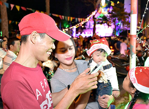 Thời tiết tại Đà Lạt có chút se lạnh, hợp với không khí Giáng sinh nên nhiều người hào hứng đi chơi và ghi lại những khoảnh khắc đẹp. Các điểm chụp ảnh lộng lẫy nằm quanh khu vực trên đường Trần Hưng Đạo, đường Thống Nhất gần Nhà thờ Thánh Mẫu...