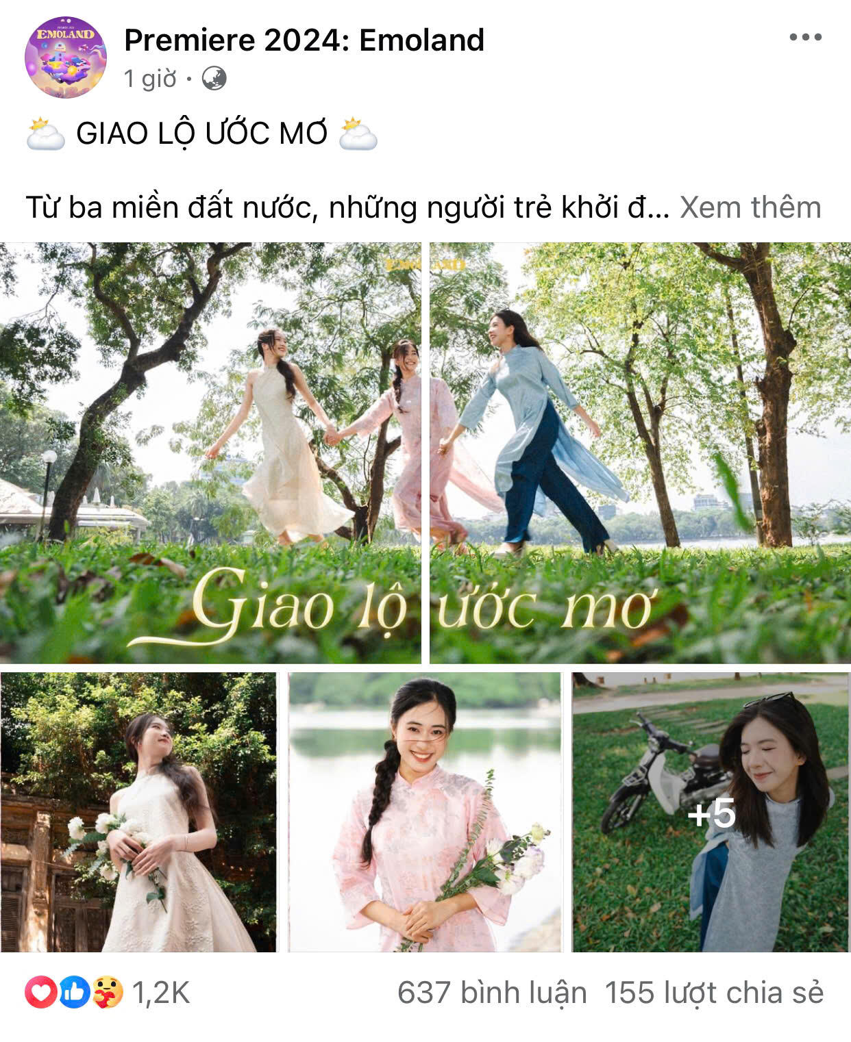 (PLVN) - Ngày 3/10, Premiere 2024: Emoland đã tung ra bộ ảnh truyền thông “Giao lộ ước mơ” trên fanpage. Bộ ảnh mang đến cho các bạn tân sinh viên thông điệp về sự kết nối từ ước mơ. Bộ ảnh đã nhận được lượt tương tác và phản hồi tích cực từ các bạn sinh viên.