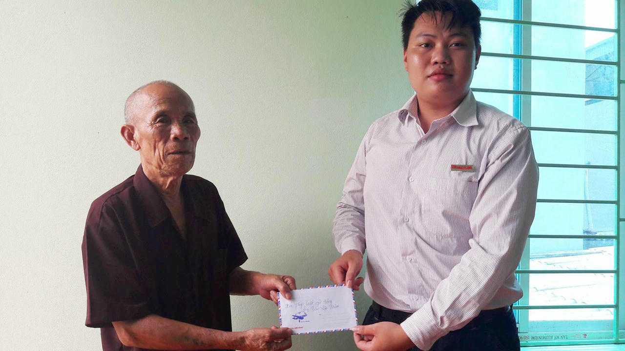 | Xúc động trước hành trình đi tìm công lý của ông Trần Văn Thêm, Báo Pháp luật Việt Nam đã trao tặng ông số tiền 5 triệu đồng để động viên ông |