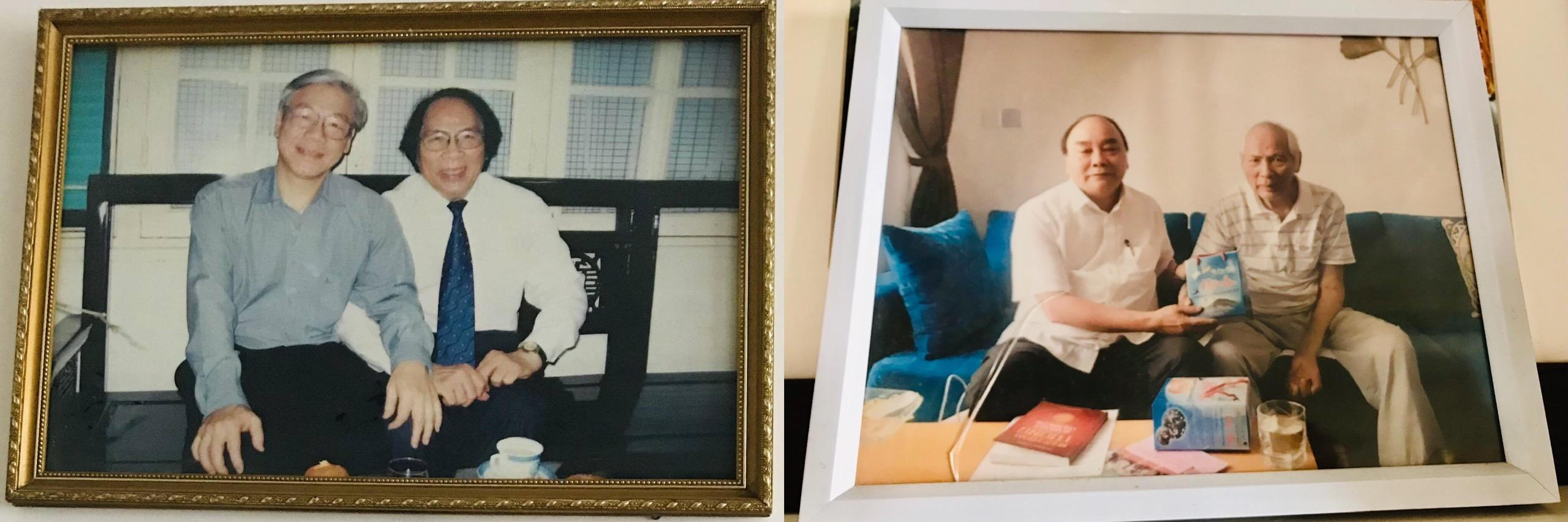 Bức ảnh chụp cùng Tổng Bí thư Nguyễn Phú Trọng, Chủ tịch nước Nguyễn Xuân Phúc được Giáo sư Hoàng Chương treo trang trọng tại phòng khách. |