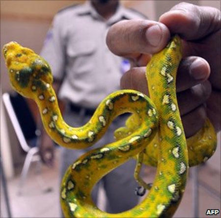 Hai người đàn ông Indonesia có tên Yaqub Ebrahim và Ali Hasan bị bắt giữ khi mang theo 40 con rắn lên máy bay sang Dubai và giấu chúng trong hành lý của mình.
