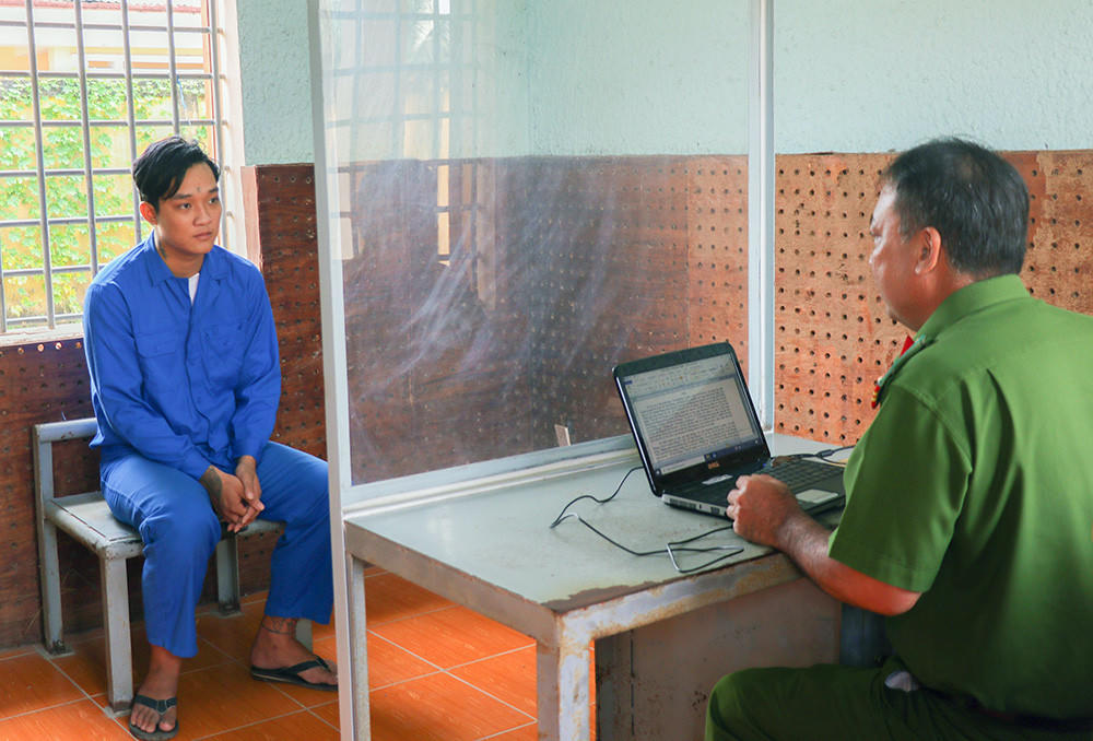 Lê Văn Minh Cảnh tại cơ quan Công an (ảnh: Công an Vĩnh Long). |