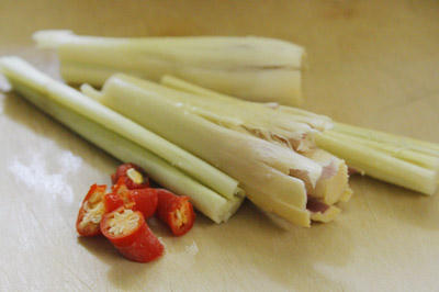 Bước 3 : Sả mua về đem bóc vỏ lớp vỏ khô già bên ngoài rửa sạch đem thái khúc rồi đem đập dập đi nhé