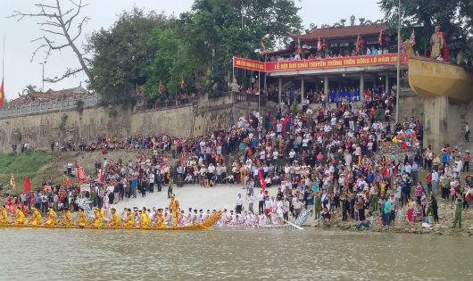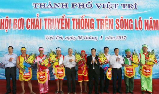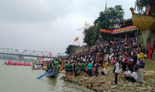 (PLO) - Trong khuôn khổ Giỗ Tổ Hùng Vương - Lễ hội Đền Hùng 2017, sáng nay 5/4 (tức 9/3 âm lịch), tại Đền Tam Giang, phường Bạch Hạc, Phú Thọ, Hội bơi chải truyền thống trên Sông Lô được tổ chức với sự tham gia của 6 đội chải.