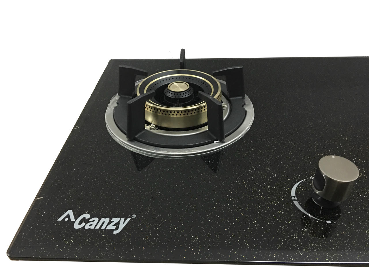 Được thiết kế với kiểu 2 lò nấu kích thước 750x450mm, kích thước khoét đá 680x380mm, bếp gas âm Canzy khoác lên mặt kính bằng kim sa dày 8mm giúp sản phẩm nổi bật trong căn bếp của bạn.Với thiết kế đó đảm bảo chịu được nhiệt độ cao khi nhiệt lượng từ bếp tỏa ra.