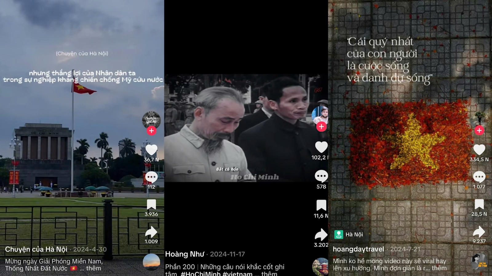 Nắm bắt xu hướng “lên sóng” mọi điều trên mạng xã hội, nhiều bạn trẻ lựa chọn TikTok và Instagram Reels làm nền tảng để kể lại những câu chuyện lịch sử theo phong cách mới lạ. Thay vì trình bày khô khan, giới trẻ hóa thân thành các nhân vật lịch sử, sử dụng âm nhạc, hiệu ứng chuyển cảnh bắt mắt để tái hiện lại khoảnh khắc hào hùng một cách sinh động. Những clip kể chuyện về Bác Hồ, Võ Thị Sáu, hay sự kiện 30/4 với lời thoại hiện đại, ngôn ngữ trẻ không chỉ lan tỏa nhanh chóng mà còn giúp lịch sử “bắt trend” thật sự với giới trẻ.