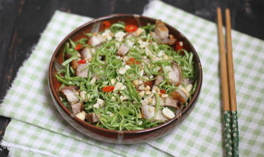 (PLO) -Vị ngọt của thịt với rau muống giòn rụm làm cho món gỏi này cực hấp dẫn. Nếu không có lò nướng, bạn có thể thay thịt heo quay thành thịt heo luộc thái chỉ.