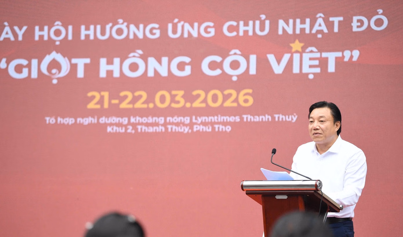 Ngày 22/3, tại Tổ hợp nghỉ dưỡng khoáng nóng Lynntimes Thanh Thủy (Phú Thọ), chương trình “Giọt hồng Cội Việt” năm 2026 đã thu hút hàng nghìn người tham gia, tiếp nối hành trình nhân ái trong khuôn khổ Chủ Nhật Đỏ do báo Tiền Phong tổ chức.