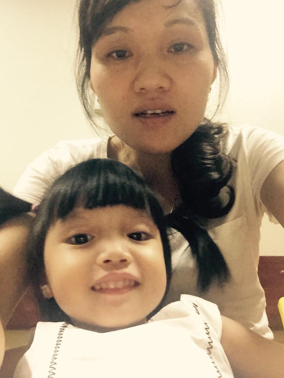Diệu Anh cùng mẹ chụp chung bức ảnh gửi cho bố đang công tác xa nhà. |