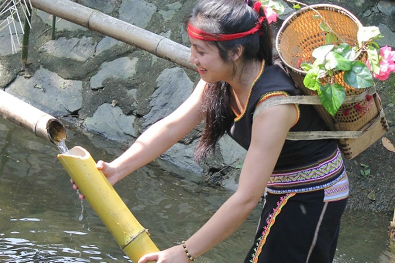 Cô gái Xê Đăng hứng nước mang về làng. |