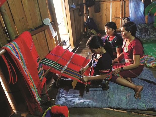 Phụ nữ Xê Đăng với nghề dệt thổ cẩm truyền thống. |