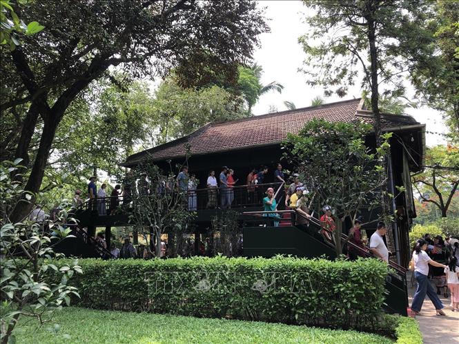 Du khách tham quan Nhà sàn Bác Hồ trong Khu di tích Chủ tịch Hồ Chí Minh tại Phủ Chủ tịch. (Nguồn: TTXVN) |