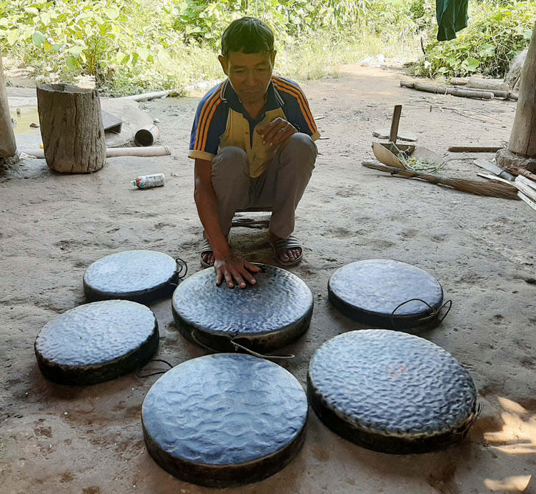 Vừa tiếp chuyện, già làng đã nói “tôi quý nhất là bộ cồng chiêng gồm 6 chiếc, không biết chúng có từ bao giờ mà chỉ biết đây là bộ cồng chiêng do cha ông từ nhiều đời để lại, vì vậy tôi phải giữ gìn như “hồn” của dân tộc, những chiếc cồng chiêng được sử dụng trong các nghi lễ, tín ngưỡng quan trọng như đám cưới, mừng lúa mới, đưa người chết ra mồ... phát huy được giá trị cao.