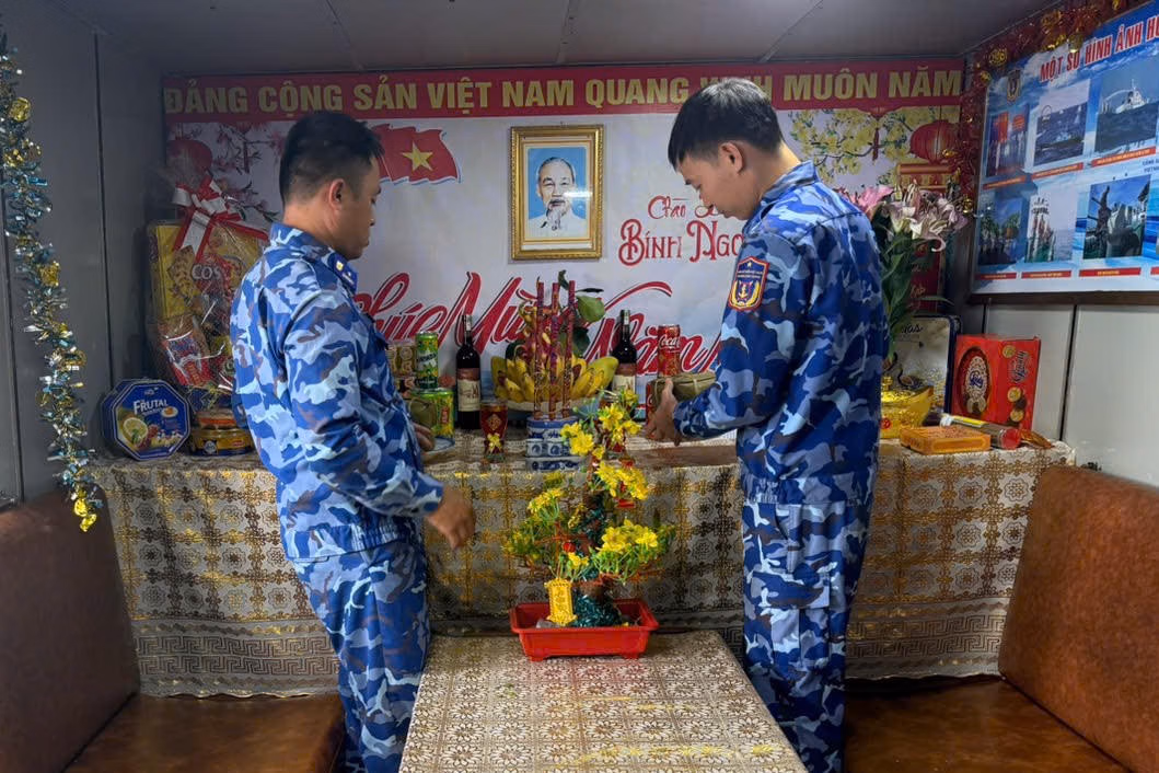 Góc sinh hoạt chung rực sắc mai vàng phương Nam, điểm thêm sắc đào hồng phương Bắc, tạo nên không khí sum vầy giữa trùng khơi. Giữa mênh mông trùng khơi, các cán bộ, chiến sĩ không chỉ chắc tay súng giữ chủ quyền, mà còn mang theo cả hương vị Tết ra với ngư dân nơi đầu sóng. Trung úy Hồ Sĩ Tâm, Chính trị viên tàu CSB 4031 cho biết, bên cạnh tuần tra, kiểm soát và tuyên truyền pháp luật, cán bộ, chiến sĩ còn chuẩn bị những phần quà nhỏ, những chiếc bánh chưng gửi tặng ngư dân, tiếp thêm niềm tin để bà con yên tâm bám biển.