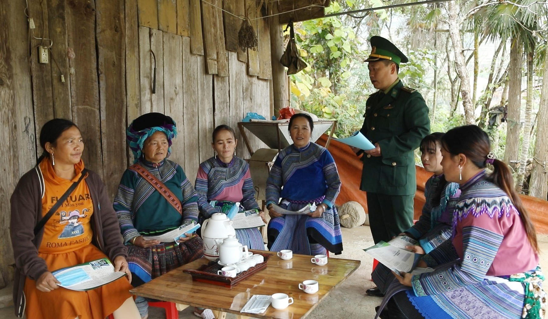 Bộ đội Biên phòng tuyên truyền các chủ trương, chính sách của Đảng cho người dân vùng biên giới. (Ảnh: Lam Hạnh) |