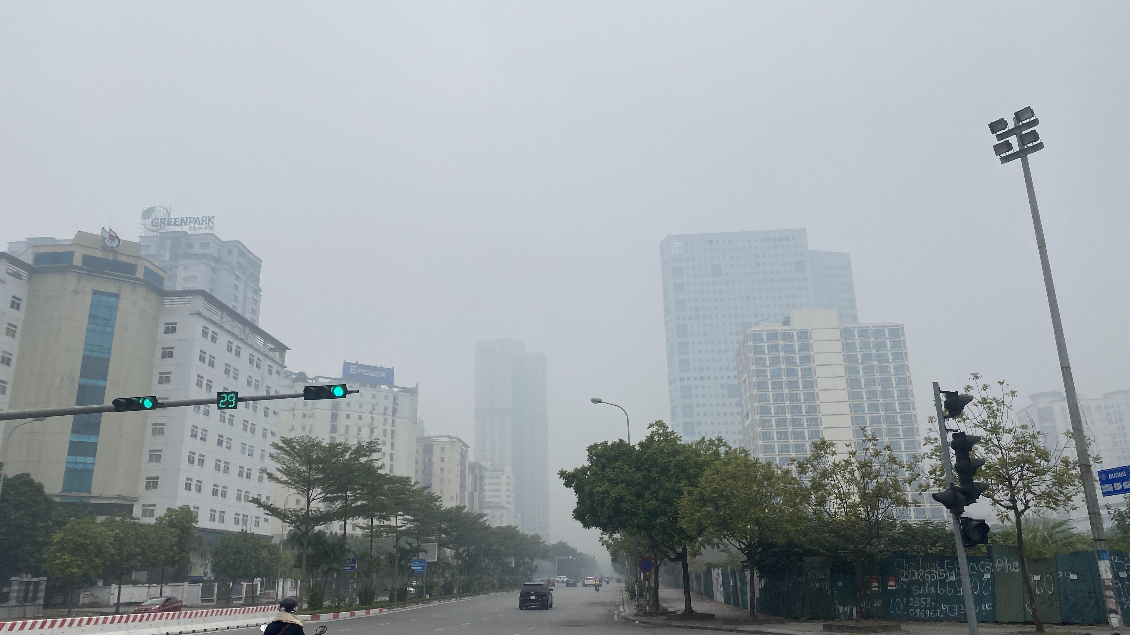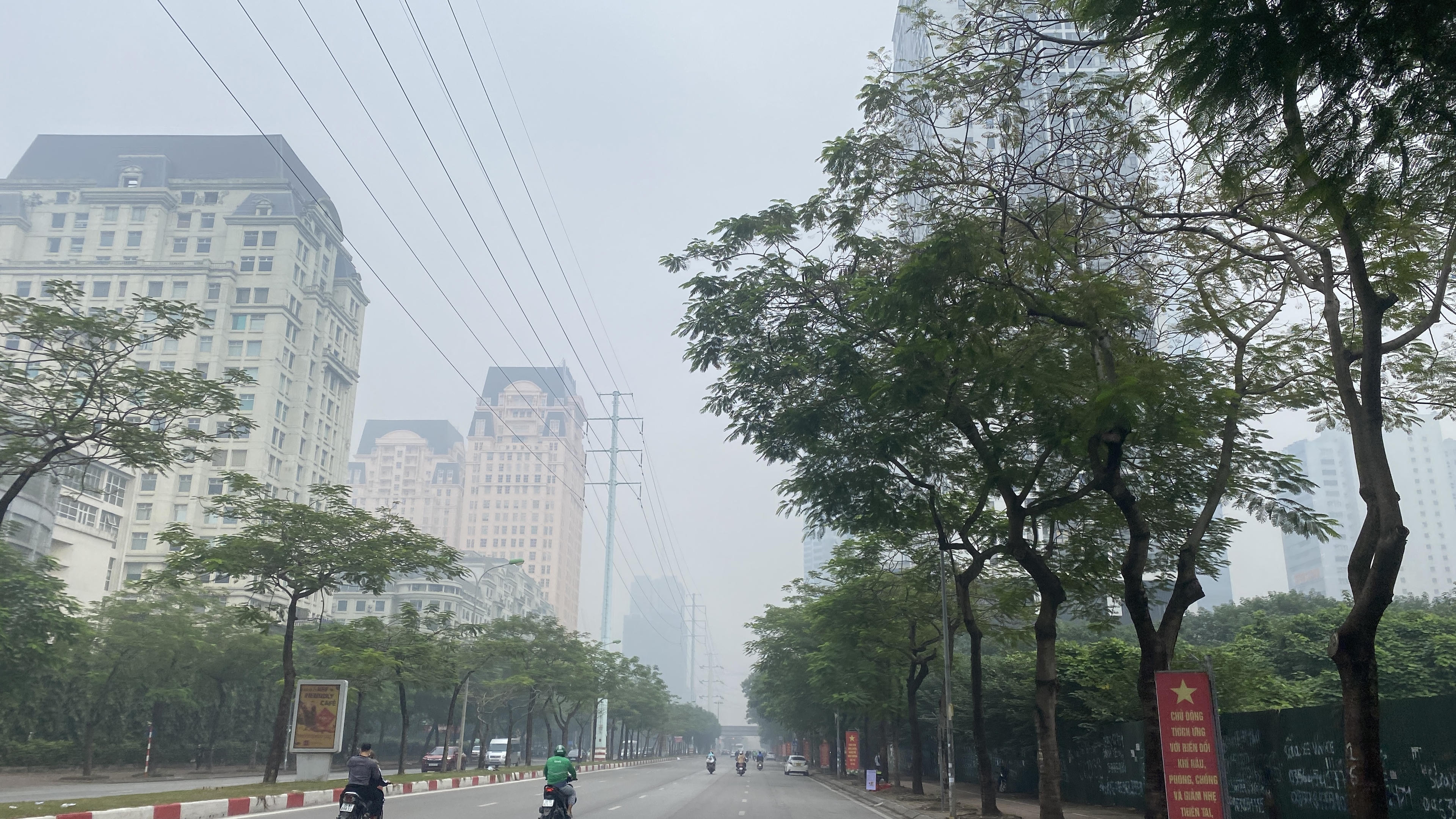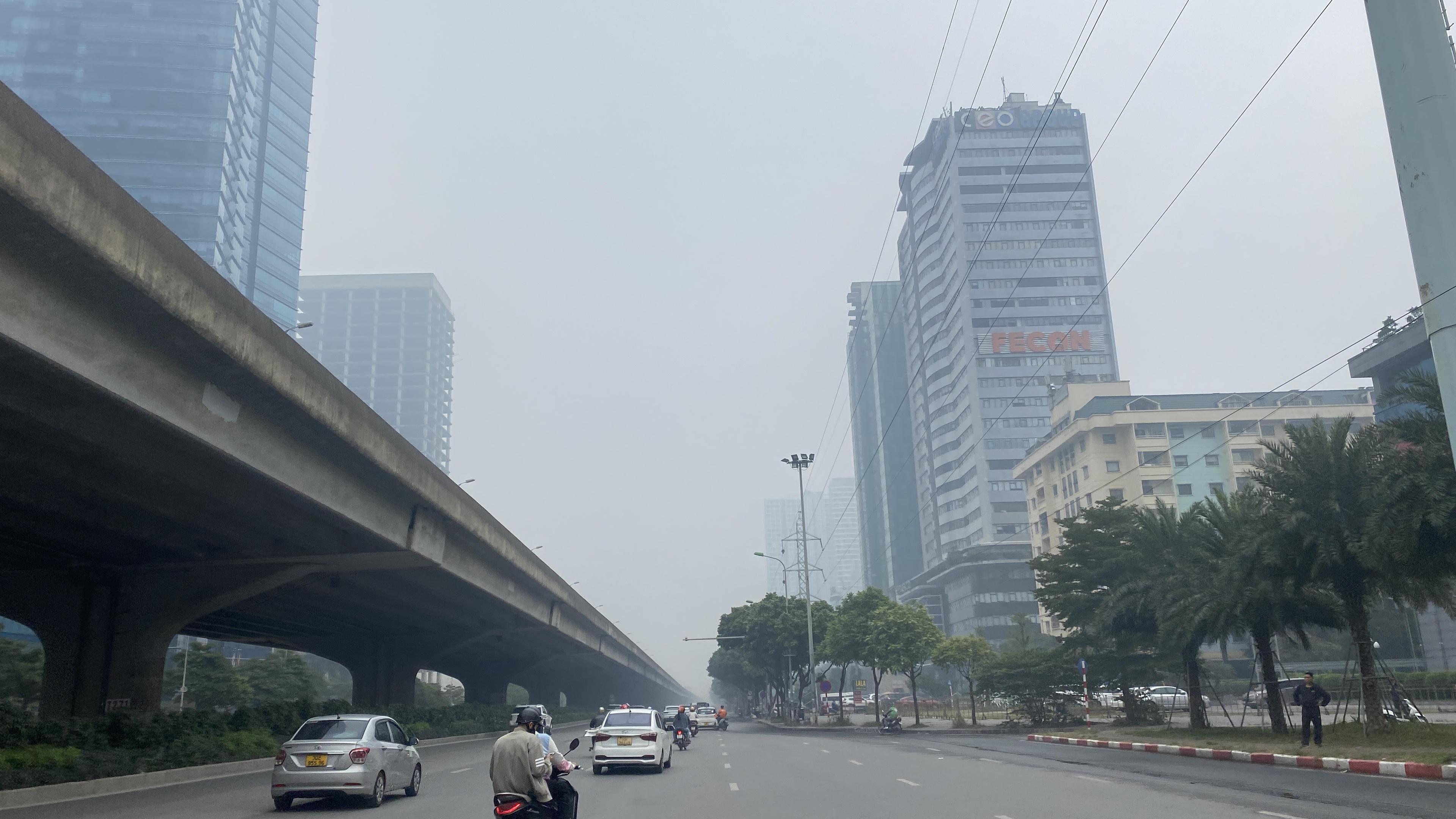 Bầu không khí đặc quánh do bụi mịn và sương mù tại khu vực Mỹ Đình, Cầu Giấy. |
