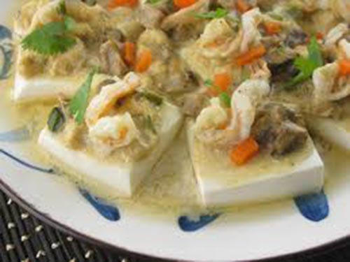 - Tôm nấu đậu phụ: Tôm 15 g, đậu phụ 70 g, cho thêm ít hành, gừng, muối vào nấu cùng.