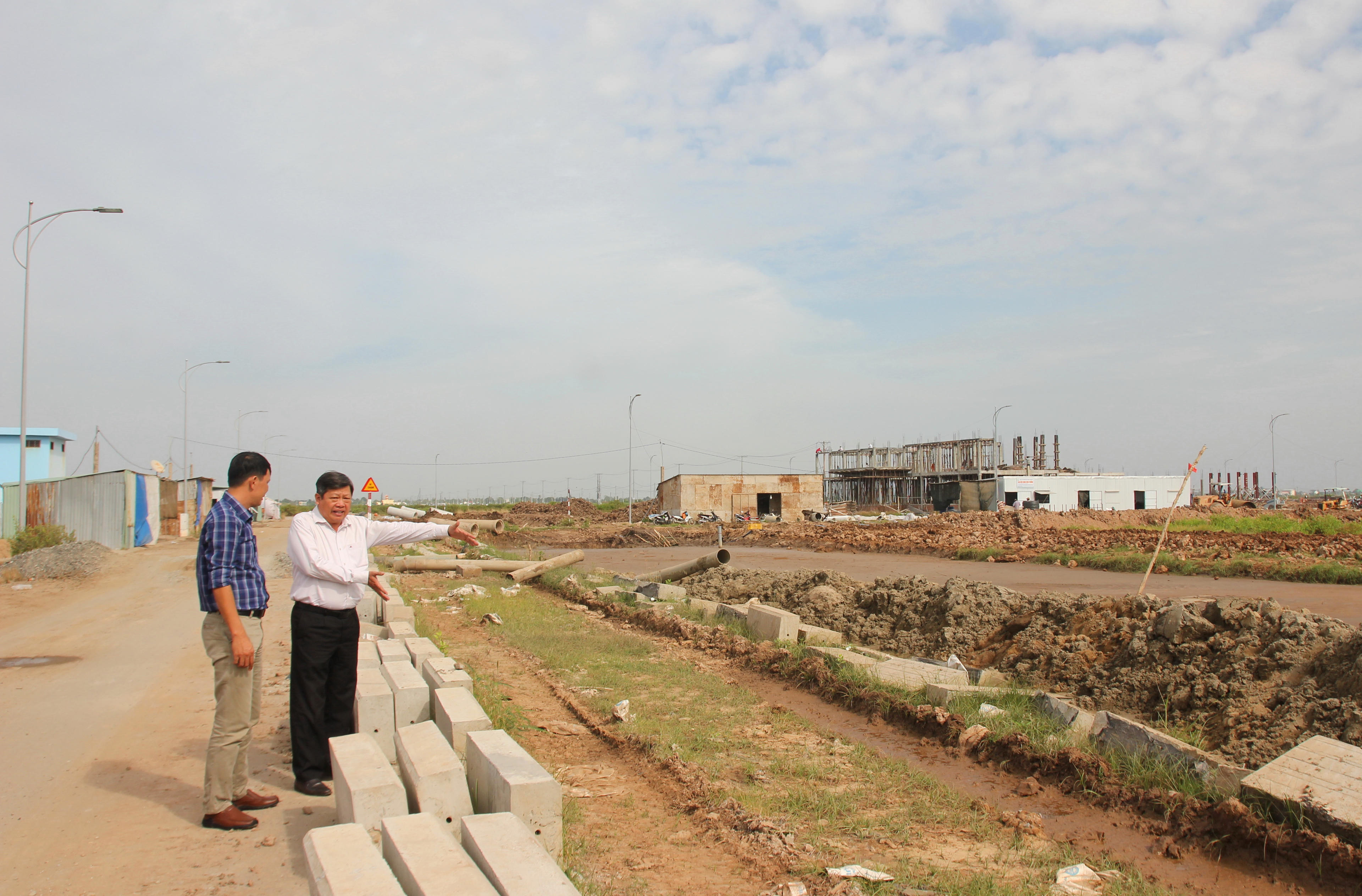 Ông Phạm Hoàng Minh – Giám đốc Ban Quản lý Khu nông nghiệp ứng dụng công nghệ cao phát triển tôm Bạc Liêu kiểm tra tiến độ thi công tại Khu nông nghiệp ứng dụng công nghệ cao. |