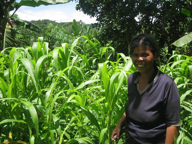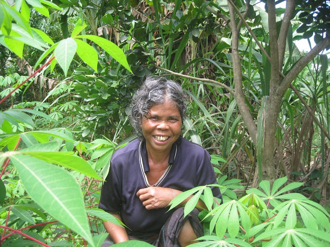 Nụ cười tươi hiện ra trên gương mặt sạm đen của người phụ nữ quanh năm dãi dầu sương nắng. Người mẹ vùng cao bảo đang chế biến món ăn từ quả mít non hái sau vườn. Bữa trưa của hai mẹ con sẽ là mấy thứ rau quả sau nhà.