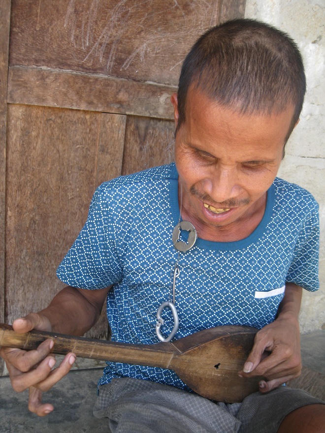 Con trai bà Kăn Ten ngồi một mình trước hiên nhà. Người đàn ông mù lòa, ốm yếu, ôm trong lòng chiếc đàn nhỏ. Đôi tay gân guốc ấy gảy nên những âm thanh réo rắt tràn đầy sức sống, khác hẳn cái vẻ ốm yếu quắt queo vì bệnh tật của anh.