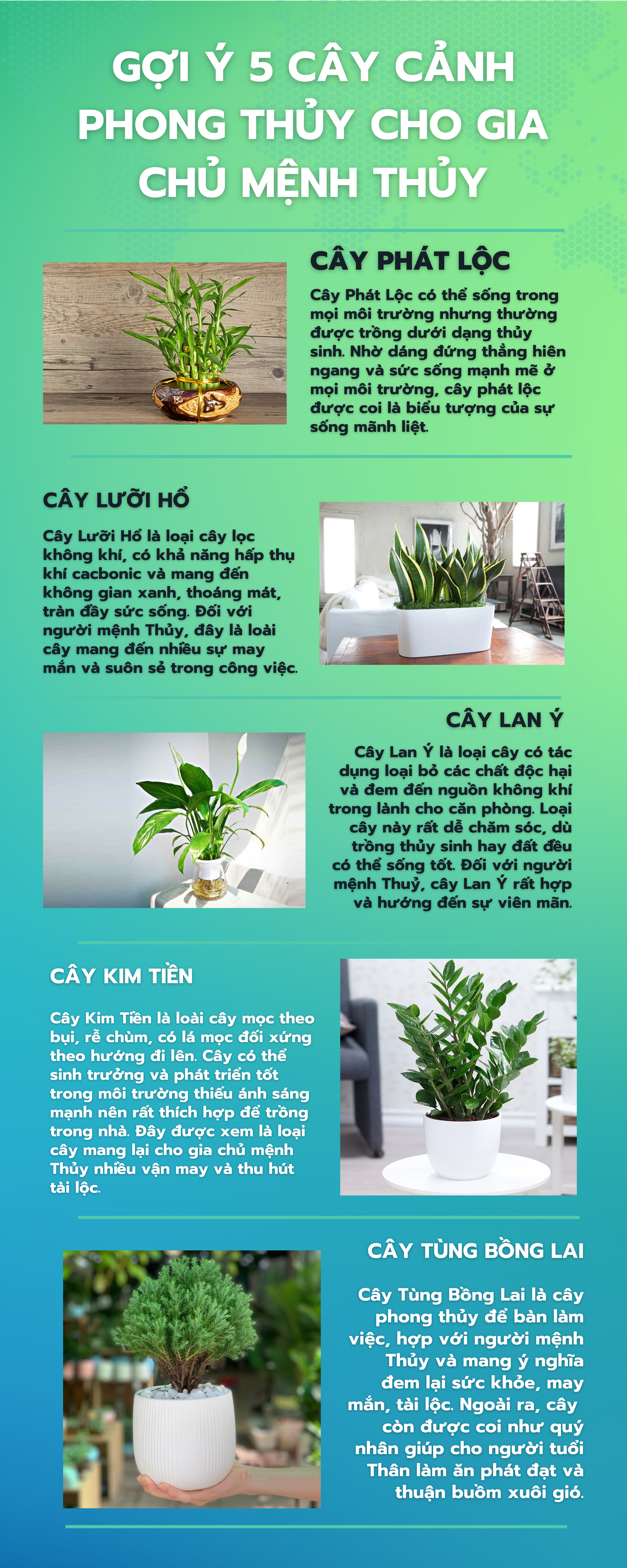 (PLVN) - Mệnh Thủy tượng trưng cho dòng nước hiền hòa, dịu êm, uyển chuyển và khéo léo, giúp nuôi dưỡng sự sống của vạn vật . Những người mang mệnh Thủy rất khéo léo trong việc giao tiếp và thuyết phục người khác. Vì vậy, việc chọn một vài loại cây phong thủy hợp bản mệnh sẽ tiếp thêm động lực để những người mệnh Thủy khẳng định giá trị của bản thân.
