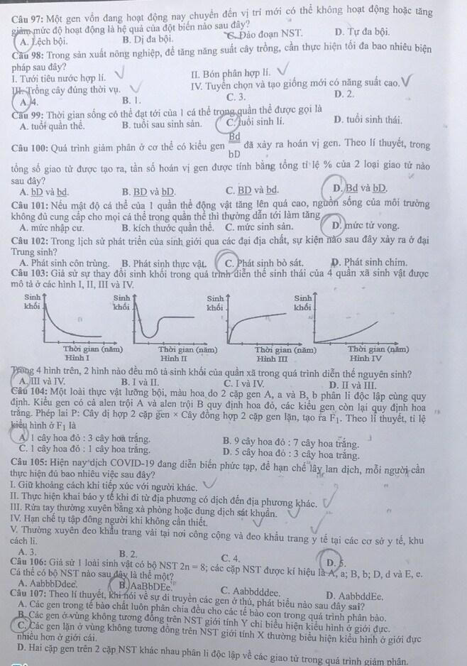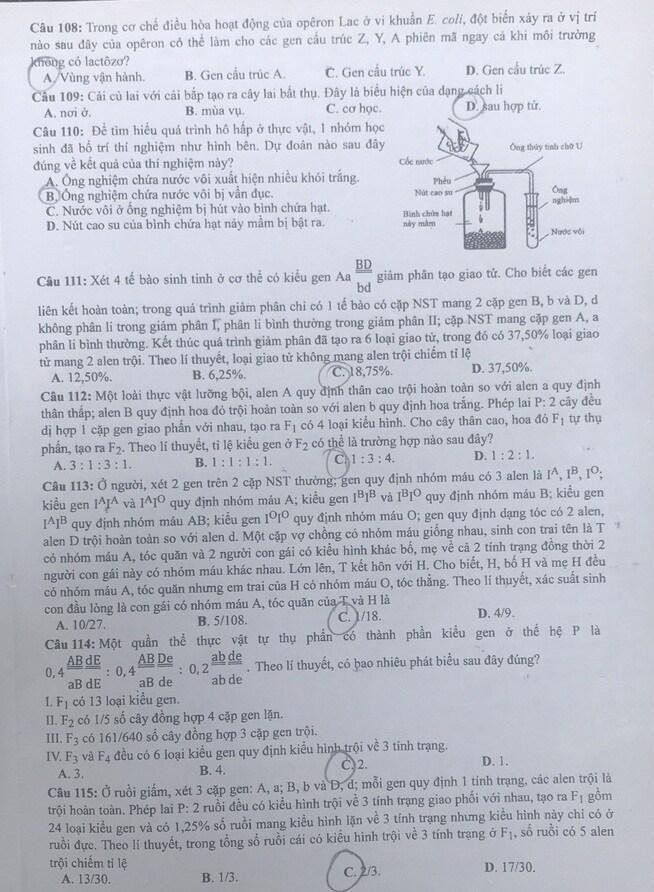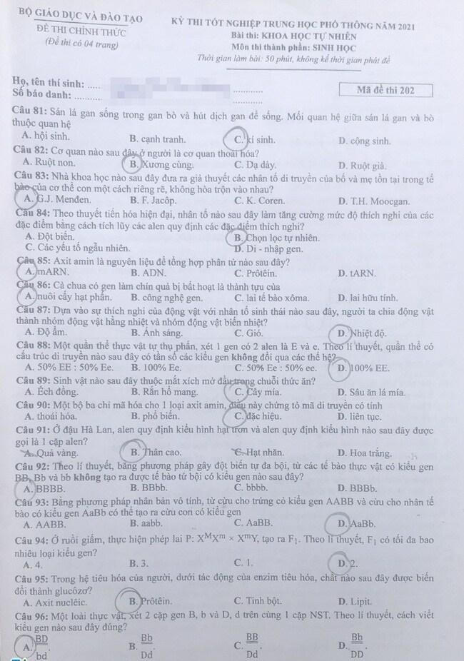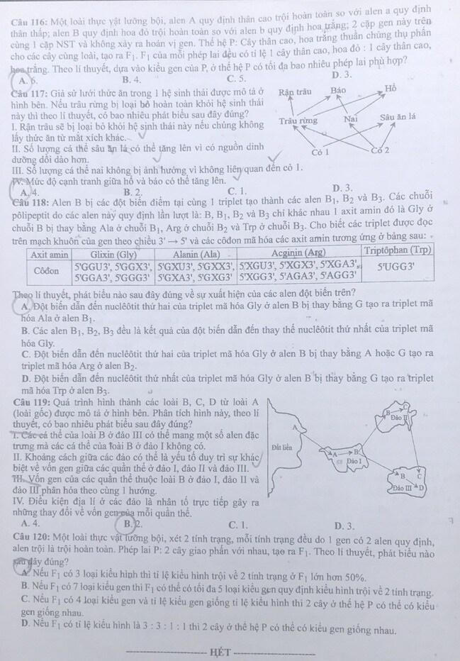 Dưới đây là đề thi môn Sinh học mã đề 202:
