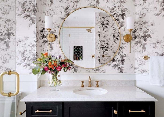 Nếu chủ nhân căn là một nữ gia chủ yêu thích phong cách nữ tính thì có thể sử dụng giấy dán tường hình hoa trong phòng tắm.