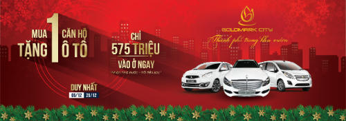 Ngoài ra, từ ngày 5/12 – 25/12, chủ đầu tư Goldmark City cũng đang triển khai chương trình ưu đãi đối với các khách hàng mua căn hộ tại khu Ruby. Cụ thể, khách hàng sẽ được nhận nhà trước, trả tiền sau với chỉ với mức đóng ban đầu 575 triệu đồng, chiết khấu cao nhất lên đến 700 triệu đồng/căn hộ. Đặc biệt, khi mua căn hộ tại khu Ruby, quý khách nhận ngay phần quà là một ô tô Misubishi MT, hoặc một ô tô Chervolet Spark Van, hoặc một bộ trang sức kim cương PNJ trị giá 120 triệu đồng.