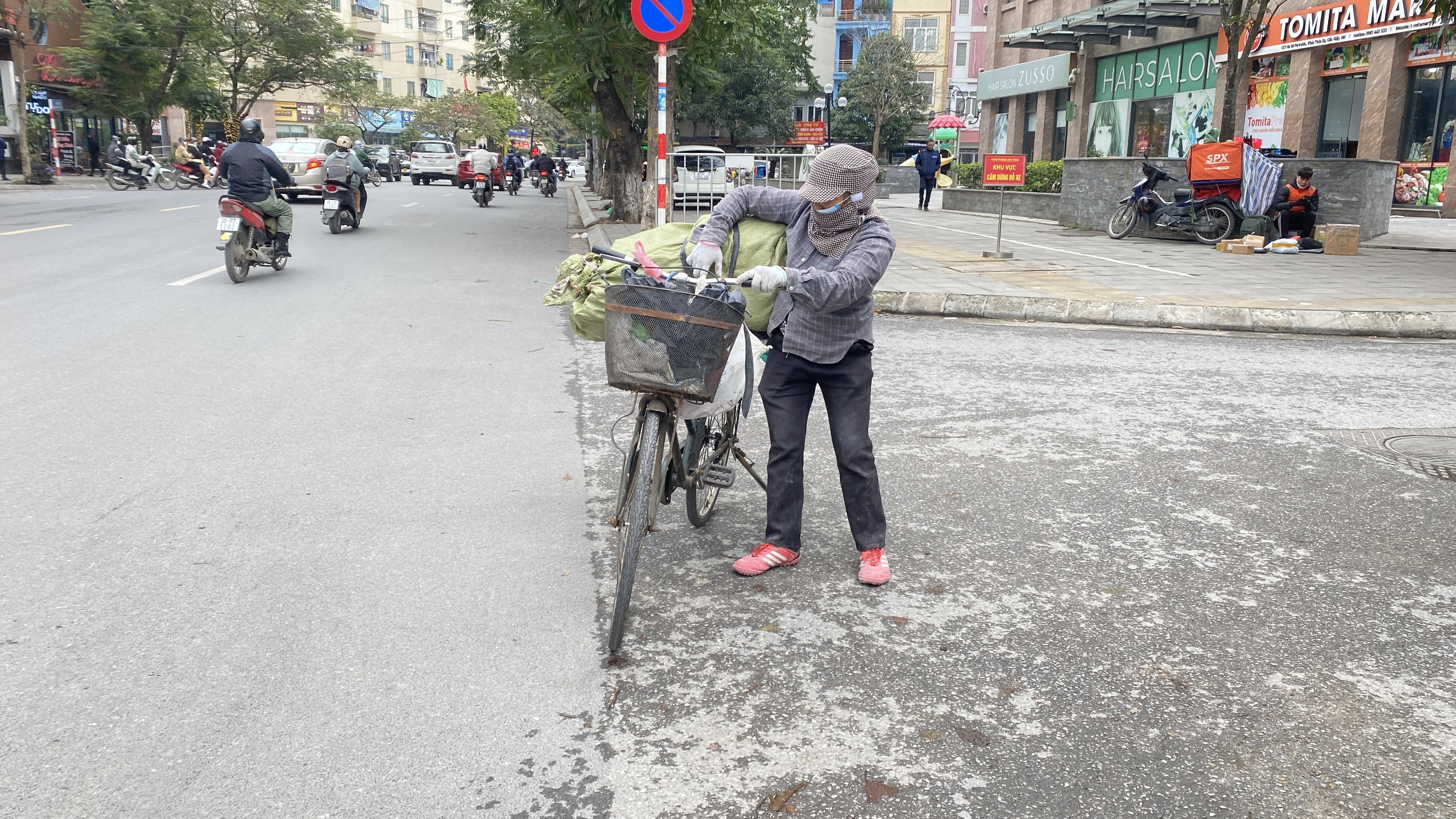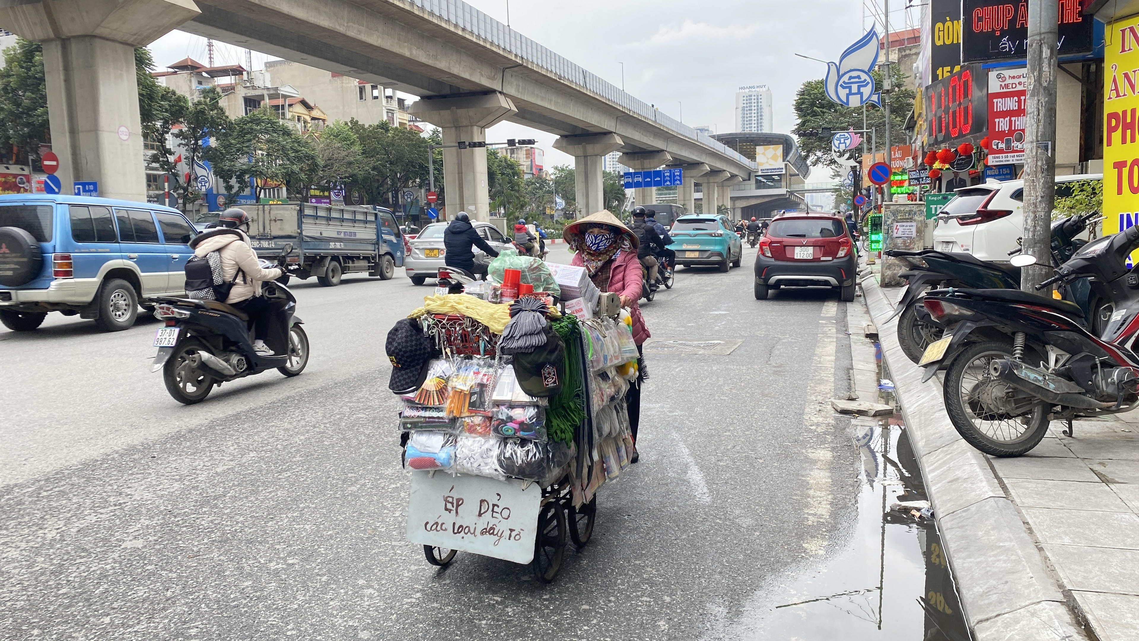 Người bán hàng rong trên phố trưa 23/1.