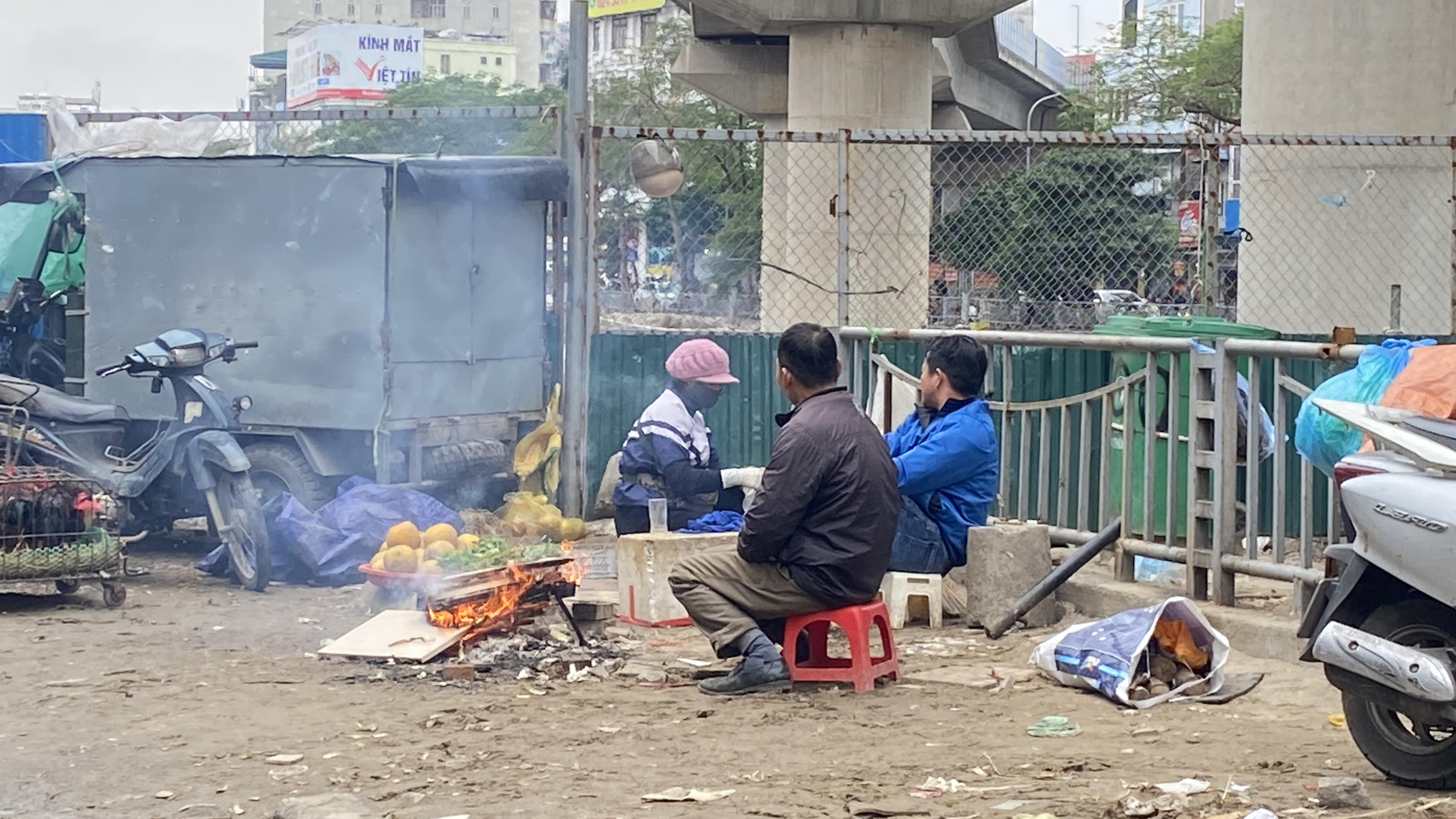 Nhiều người phải nhóm lửa trên vỉa hè để sưởi ấm.
