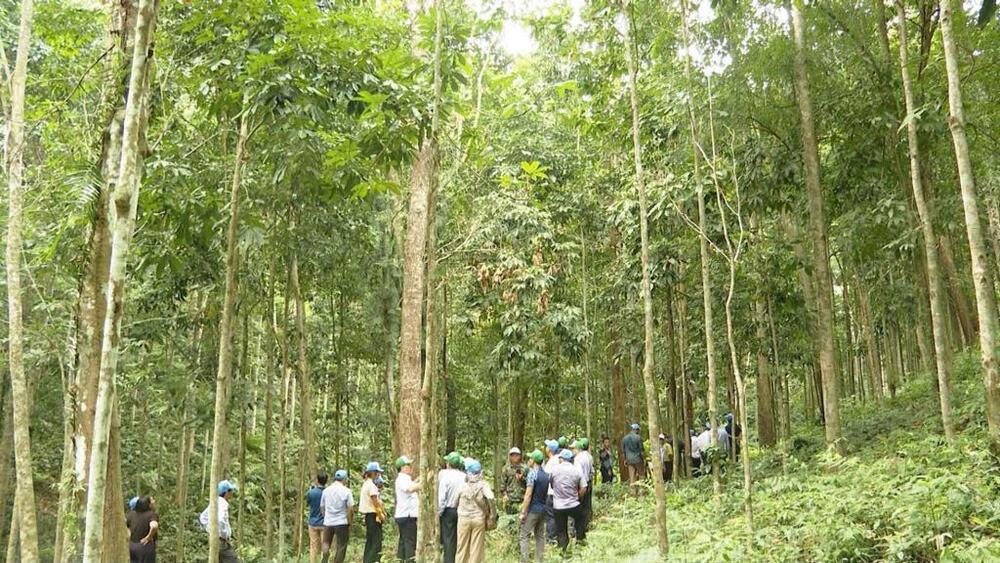 Các đại biểu tham quan một khu rừng huỷnh, 20 năm tuổi, được trồng bởi ông Nguyễn Xuân Thiết ở xã Hướng Hóa, Quảng Bình