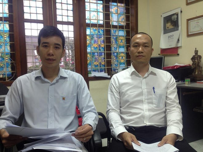 | Ông Nguyễn Đức Quân, Phó TGĐ IDJ (bên trái) và ông Lục Thanh Tùng, Giám đốc Hành chính nhân sự của IDJ trình bày những khuất tất của Grand Plaza với Báo PLVN điện tử |