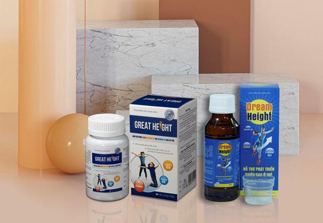 Sản phẩm Great Height dạng viên nang và Dream Height dạng siro dễ uống cho mọi lứa tuổi. |