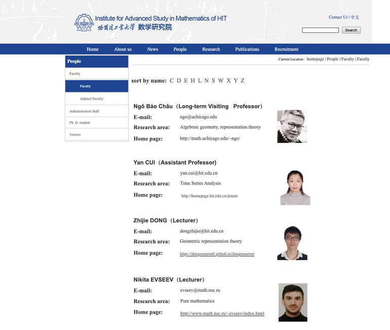 Hình ảnh GS Ngô Bảo Châu trên website của Viện Toán thuộc Học viện Cáp Nhĩ Tân - Trung Quốc (Ảnh: Chụp màn hình).