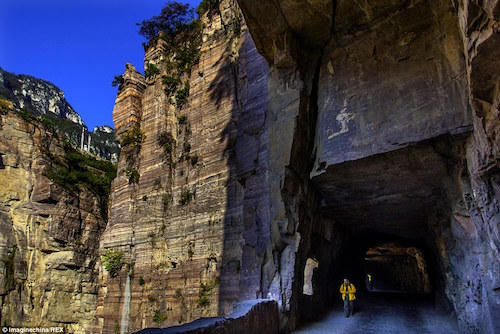 Trước tình hình đó, 13 người thợ trong làng quyết định đào đường hầm qua núi Taihang. Họ phải mất tới 5 năm để hoàn thành đường hầm dài 1.250 m, cao 5m và rộng 4m, đủ để hai xe tránh nhau. Do không có kinh nghiệm trong việc đào hầm và sử dụng thuốc nổ, 5 người đã chết trong quá trình xây dựng. Tuy vậy, đến ngày 1/5/1977, đường hầm chính thức được khai thông. Ảnh:Imagine China.