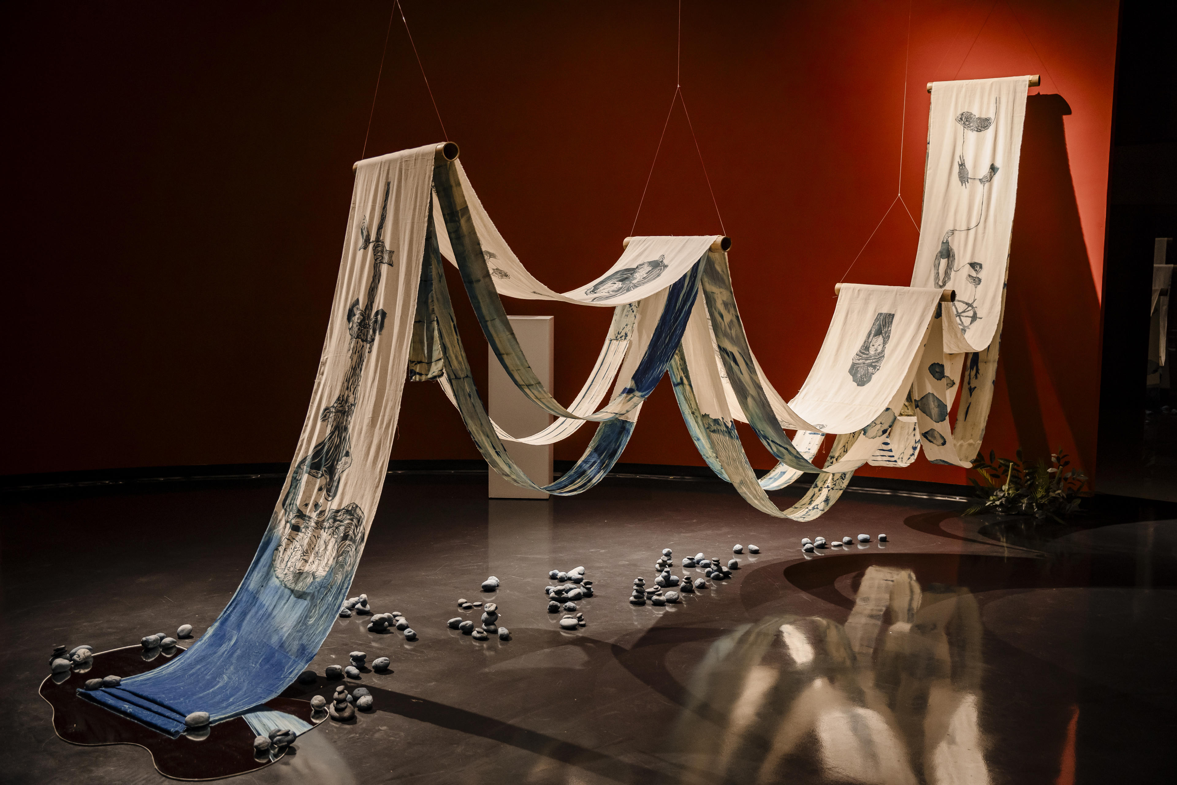 Mô tả ngắn gọn về triển lãm, nghệ sĩ Phạm Thùy Dương cho biết: “‘Hạ chiều xanh lam’ là một không gian của giao thoa: giữa miền núi và miền biển, giữa con người và thiên nhiên, giữa cái đã qua và những điều sắp đến.” Ý niệm này gắn chặt với mối quan tâm xuyên suốt của cô về “sự đứt gãy của truyền thống” - nơi dù vẫn có những nỗ lực gìn giữ, nhưng chắc chắn vẫn tồn tại những câu chuyện buồn của văn hóa đang bị hao mòn.