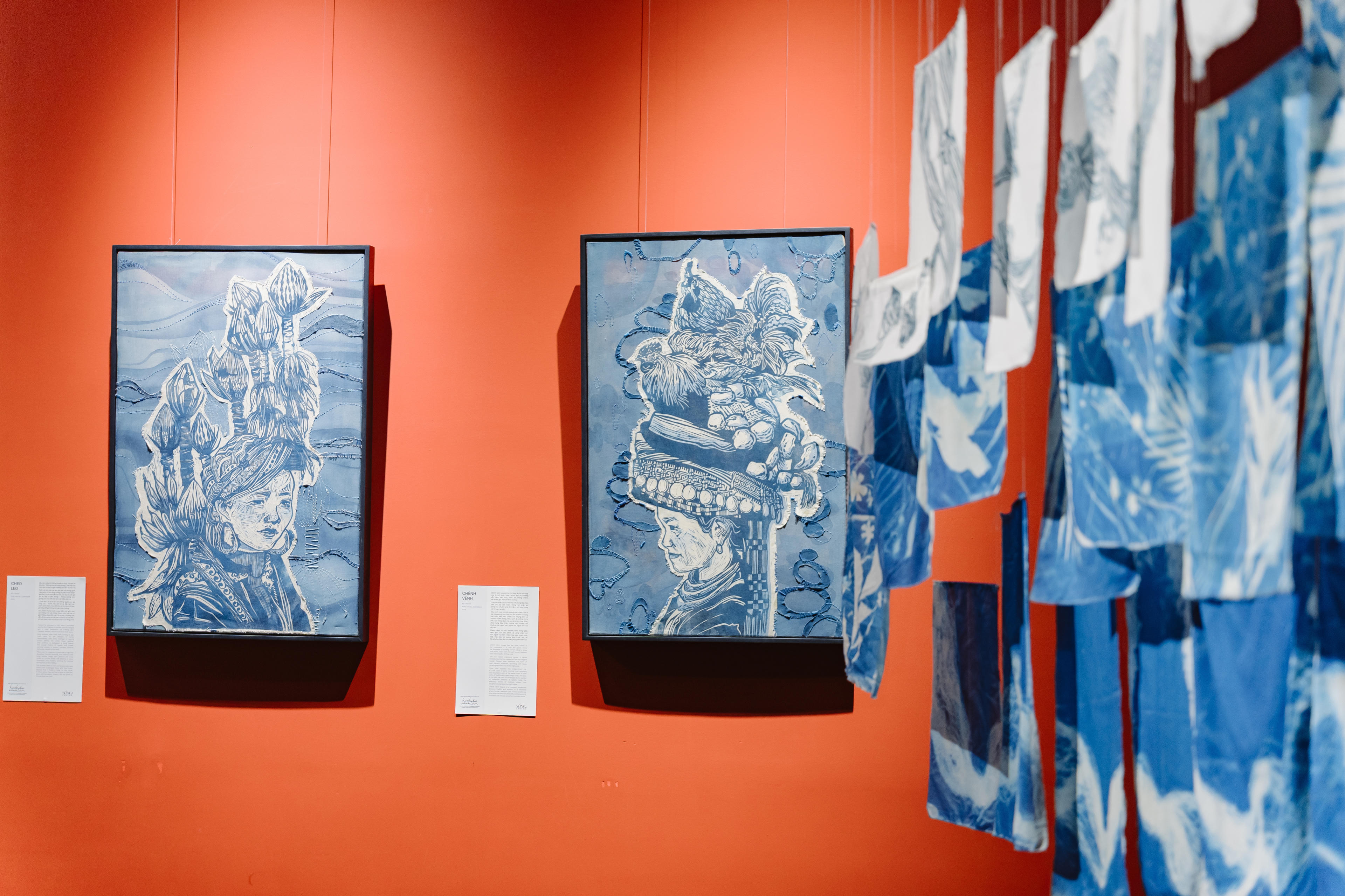 Tên gọi Hạ Chiều Xanh Lam mang ý nghĩa thị giác lẫn cảm xúc rõ nét. Theo nghệ sĩ, “Hạ chiều xanh lam là gam màu bao phủ hầu hết các tác phẩm: màu của chàm, của cyanotype, của biển và bầu trời.” Với cô, “xanh lam” không chỉ là màu sắc mà còn là một trạng thái cảm giác, “là sự lắng lại khi một ngày sắp khép.” Trong khi đó, “hạ chiều” gợi hình ảnh buổi chiều mùa hạ - thời điểm ánh sáng mạnh nhất trong năm nhưng cũng là “khoảng lặng trước khi bóng tối buông xuống”, tạo nên “một nhịp thở chậm, giống như quãng nghỉ của tâm trí.”