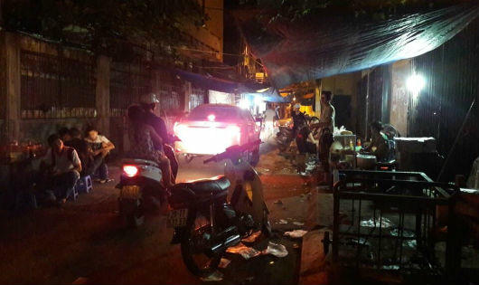 Theo quan sát, các quán ăn này mở đến tận đêm khuya, gần 23h vẫn thu hút rất đông người đến ăn uống, rác thải, nước thải đổ đầy mặt đường khiến người qua đều thấy sợ hãi và ái ngại.