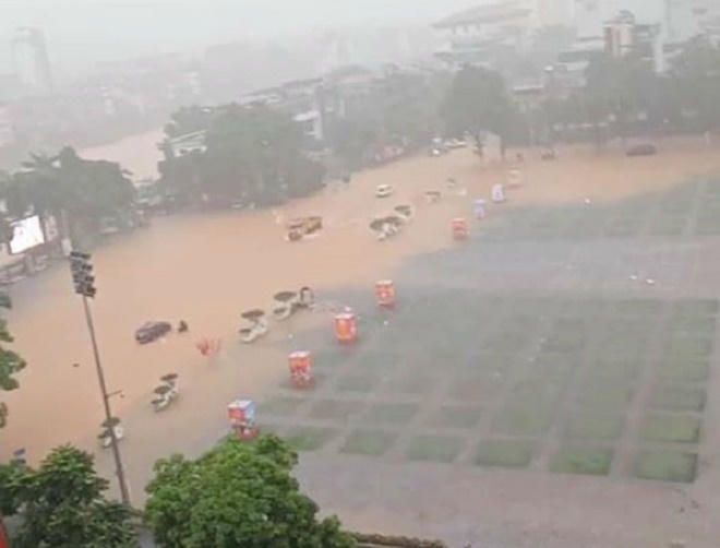Cũng theo ông Thắng, trên địa bàn thành phố Hà Giang chưa bao giờ gặp phải tình trạng ngập lụt nặng nề như vậy. Mưa lụt gây ngập cả Quảng trường 26/3 (TP Hà Giang, tỉnh Hà Giang).