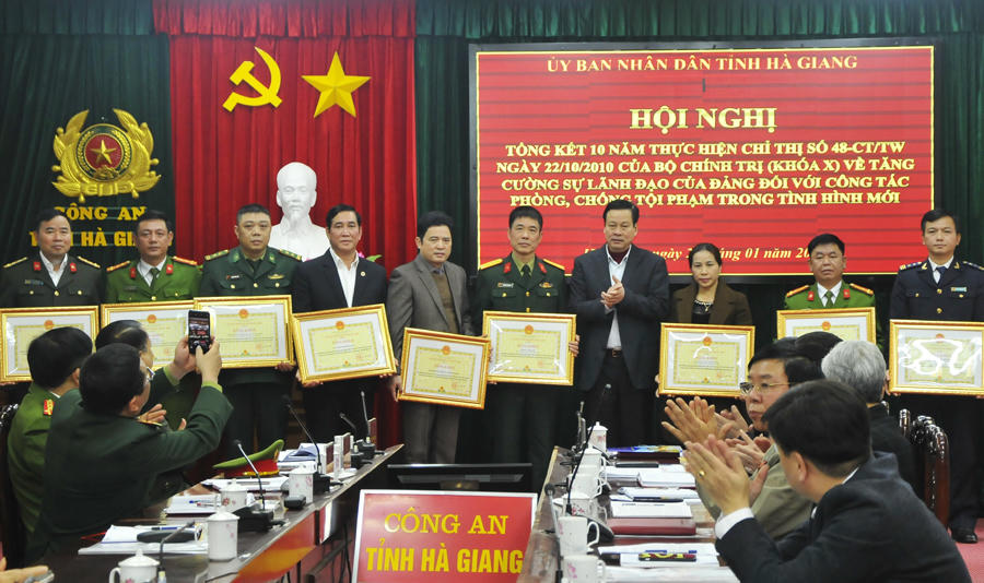 Tại hội nghị, Chủ tịch UBND tỉnh tặng Bằng khen cho nhiều tập thể, cá nhân có thành tích xuất sắc trong 10 năm thực hiện Chỉ thị 48 của Bộ Chính trị về PCTP.