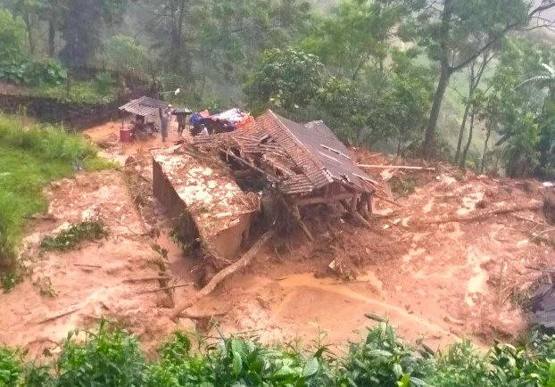 Mưa lớn gây sạt lở đất vào nhà dân ở xã Thông Nguyên, huyện Hoàng Su Phì, tỉnh Hà Giang. |