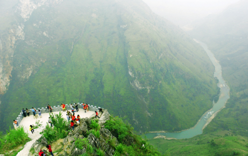 Đèo Mã Pì Lèng bên hẻm vực sông Nho Quế, vách núi xám cùng dòng sông xanh biếc tạo thành khung cảnh hy hữu thế gian