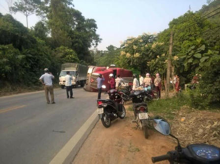 (PLO) - Đang lưu thông trên đường, chiếc xe container bị lật nghiêng đè vào hai xe ô tô đi ngược chiều khiến 4 người bị thương.