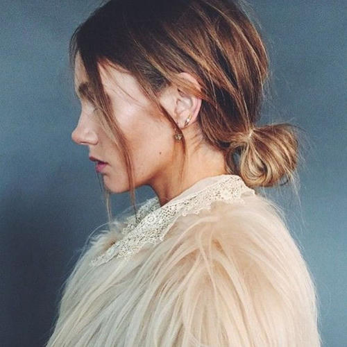 Tóc búi rối thấp hợp với đủ kiểu trang phục mùa đông, từ áo len cao cổ tới áo khoác dạ dày. |