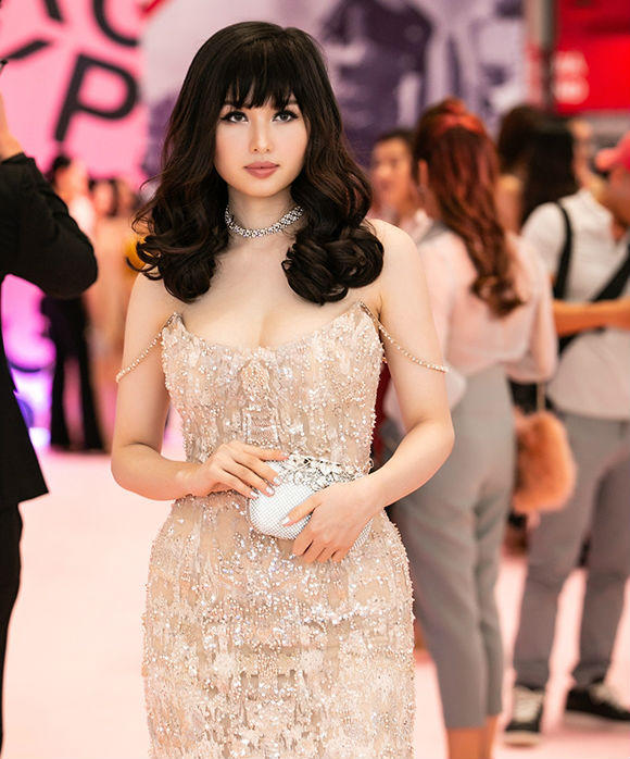 Hồ Ngọc Hà diện chiếc đầm Dolce & Gabbanna do chính người anh Đàm Vĩnh Hưng tặng, nữ ca sĩ kết hợp phong cách trang điểm ấn tượng, cô thu hút mọi ánh nhìn.