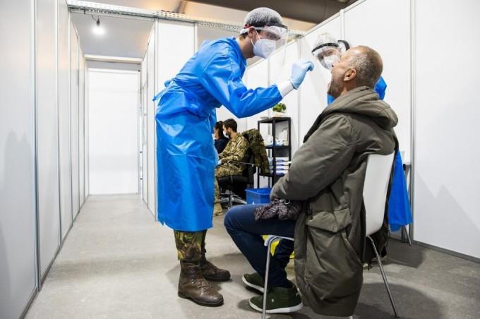 Nhân viên Bộ Quốc phòng Hà Lan thực hiện xét nghiệm COVID-19 tại thành phố Almere hôm 3/12. Ảnh: AFP.
