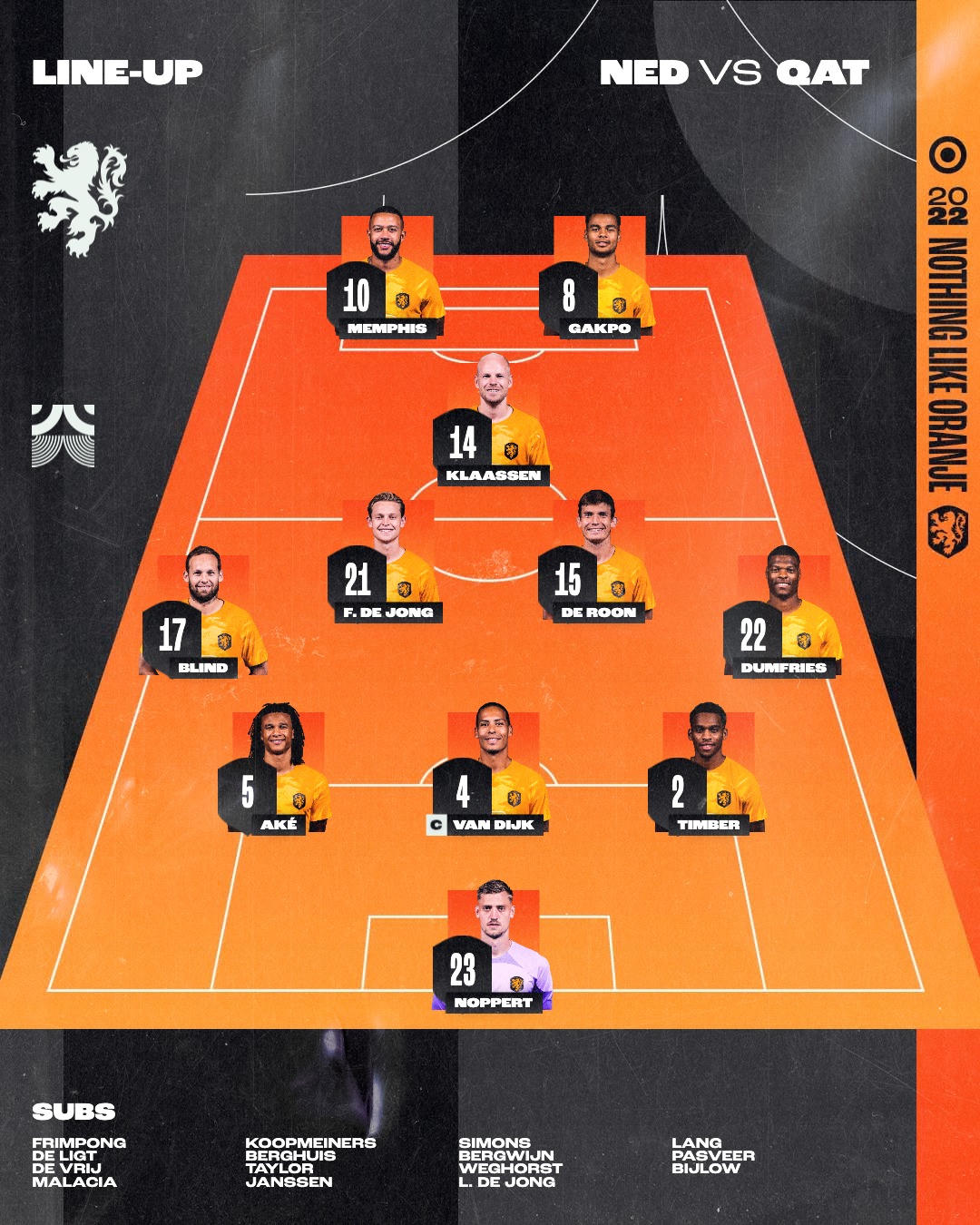 Phút 49, sau cú sút ở cự ly gần của Depay bị thủ môn đối phương cản phá, De Jong tận dụng lúc cầu thủ Qatar thoáng chần chừ, lập tức ập vào ghi bàn, nâng tỷ số lên 2-0 cho Hà Lan.